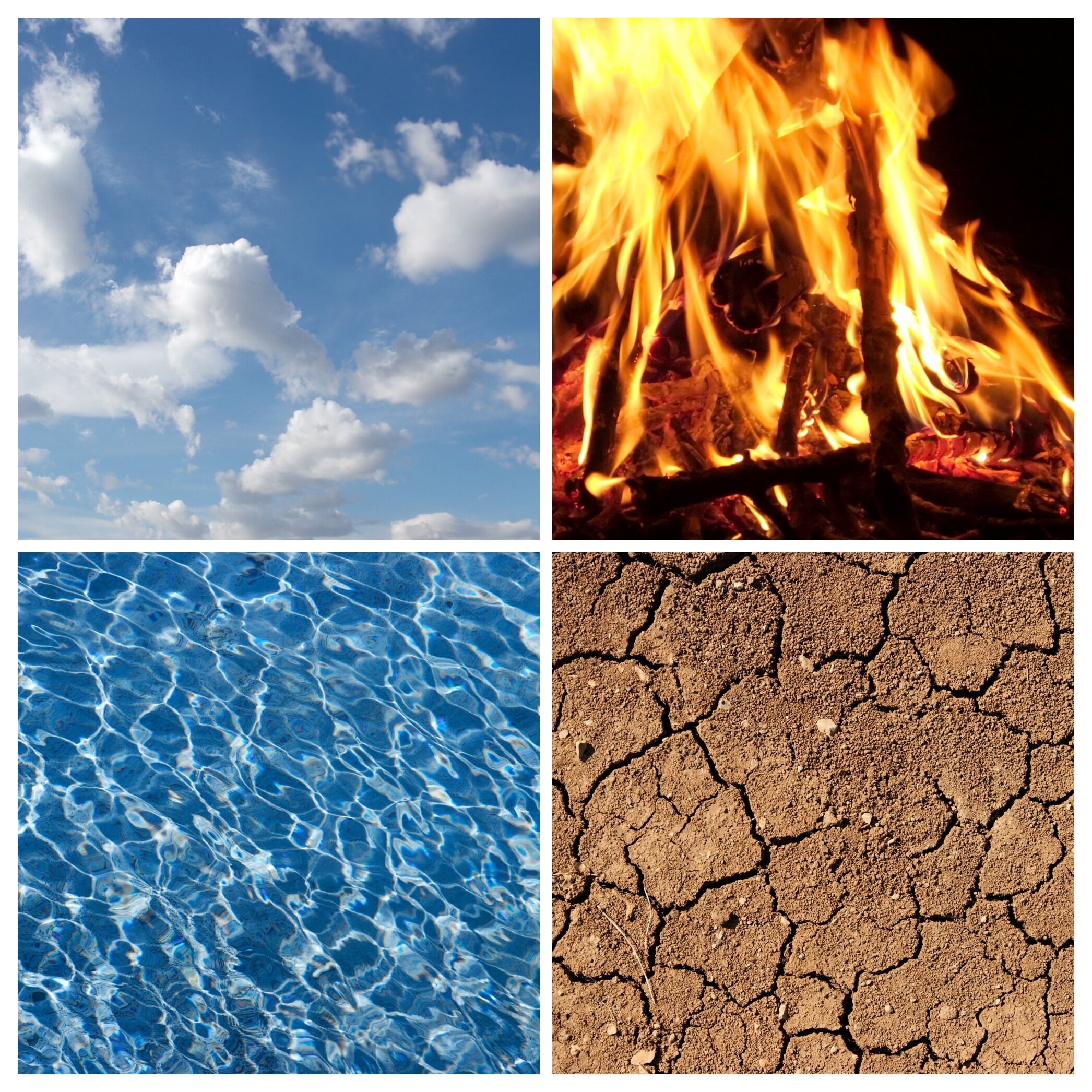 De elementleer ook wel typologie genoemd bestaat uit de vier elementen nl. aarde, water, vuur en lucht.